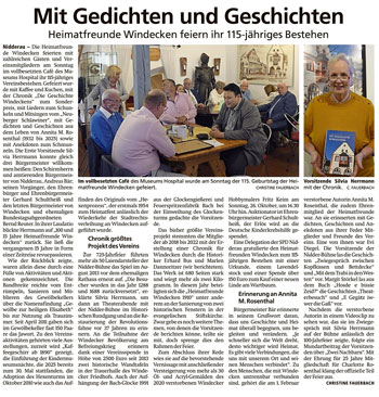 Im vollbesetzten Café des Museums Hospital wurde am Sonntag den 28.09.25 der 115. Geburtstag der Heimatfreunde Windecken gefeiert.